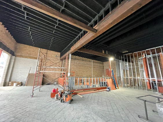 For this adaptive reuse project, Allen + Pepa was hired by Burbon Belly Hospitality and JDR Construction to convert three underutilized storefronts into a space for elevated and modern American dining. The existing building and site had served numerous purposes over several generations, from an auto-mechanic’s shop to a shoe store, and the state of the existing structure reflected this history of continuous reuse. The aesthetics of the remodeled space play off the raw nature of the structure that remained, featuring the exposed brick, steel beams, and wood joists. The building’s façade was heavily remodeled to bridge the transition from exterior to interior. A slate stone clads the exterior, and a double-sided fireplace was installed between two sets of folding storefronts. A new skylight was added to the roof to allow more natural light into the dining room, and Allen & Pepa worked closely with the owner and contractor to design an efficient kitchen in a tight space.
